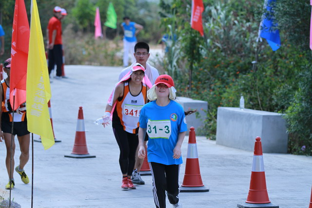 隊長丁奕峰和賀曉娟跑在一處,因為這個項目,女生跑到終點是很重要的條件,所以他不斷在賀曉娟身旁鼓著勁,上坡艱難時,還不時幫著推上一把。在他的支持下,賀曉娟成功地跑完了全程,還是集團這些隊伍里,第一個到達的女生。而丁奕峰,心甘情愿地做她身后的助推器,比她遲了兩秒也依然樂呵呵的。