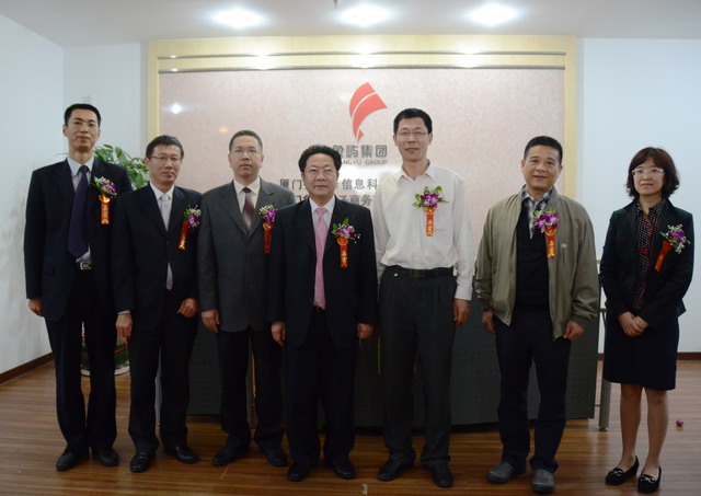 廈門市軟件園管理委員會(huì)辦公室常務(wù)副主任李永福、中國(guó)銀聯(lián)廈門分公司副總經(jīng)理王中和象嶼集團(tuán)總裁助理廖世澤、象嶼電子商務(wù)公司總經(jīng)理林立一起為公司揭牌