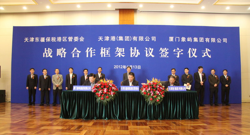 4月13日,象嶼集團(tuán)與東疆保稅港區(qū)管委會(huì)、天津港集團(tuán)簽署戰(zhàn)略合作框架協(xié)議。天津市委副書記、濱海新區(qū)區(qū)委書記何立峰見證協(xié)議簽訂,并親切會(huì)見了象嶼集團(tuán)董事長王龍雛一行,雙方圍繞加強(qiáng)合作進(jìn)行交談。天津?yàn)I海新區(qū)區(qū)委常委、秘書長李偉成,東疆保稅港區(qū)管委會(huì),天津港集團(tuán)及濱海新區(qū)有關(guān)部門負(fù)責(zé)同志參加了簽字儀式。