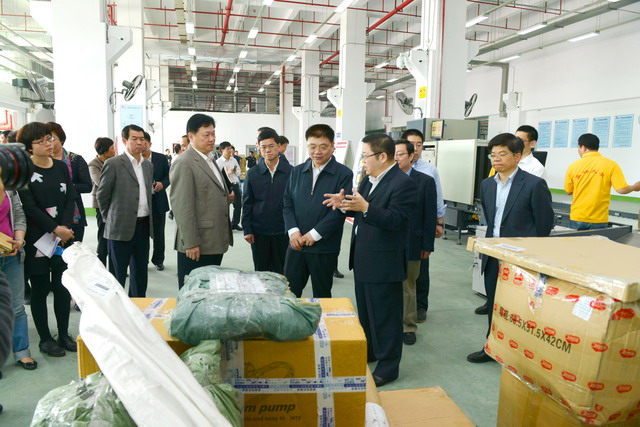 調(diào)研現(xiàn)場,王蒙徽書記等市領導聽取了王龍雛董事長、陳方副總裁對廈門跨境電商產(chǎn)業(yè)園情況的介紹,察看了作業(yè)現(xiàn)場。王書記在調(diào)研過程中對象嶼集團在自貿(mào)試驗區(qū)推動過程中邊摸索、邊推動,敢于先行先試,開拓海運快件物流新通路,構(gòu)建廈門跨境電商產(chǎn)業(yè)園的新思維、新模式給予了肯定,對海關(guān)、國檢給予的鼎力合作支持表示感謝。