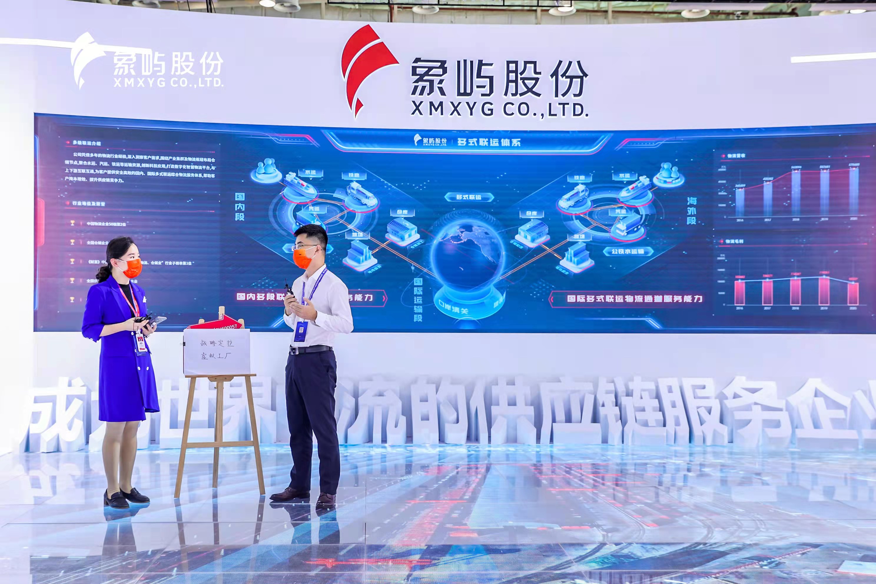 天屏地屏主屏三屏互動(dòng), 全景地屏展現(xiàn)了象嶼股份農(nóng)產(chǎn)品、能源化工、金屬礦產(chǎn)供應(yīng)鏈板塊的業(yè)務(wù)亮點(diǎn),通過東北象嶼糧倉、陜西場站、印尼不銹鋼冶煉項(xiàng)目等典型項(xiàng)目實(shí)景展示,進(jìn)一步詮釋象嶼業(yè)務(wù)模式及國際化發(fā)展!